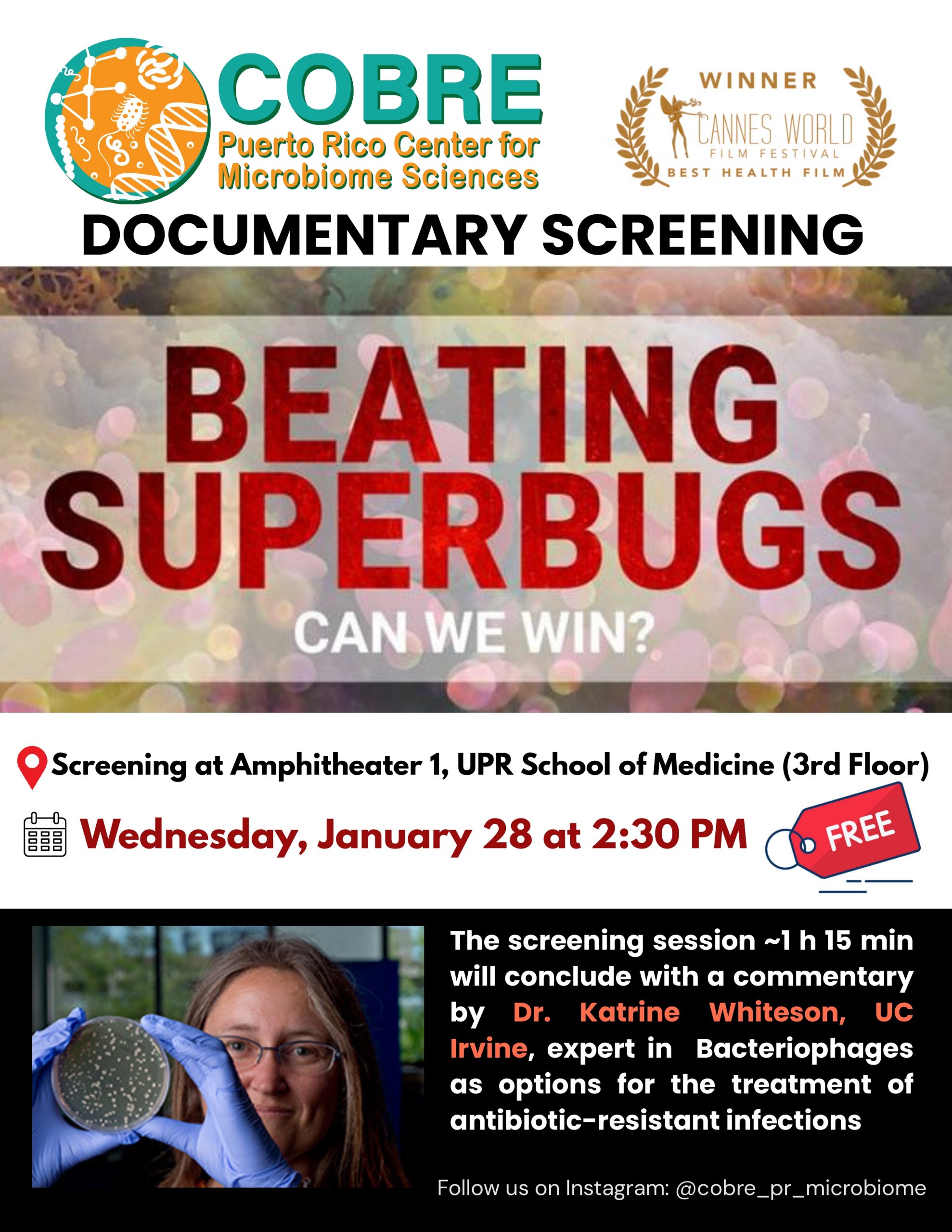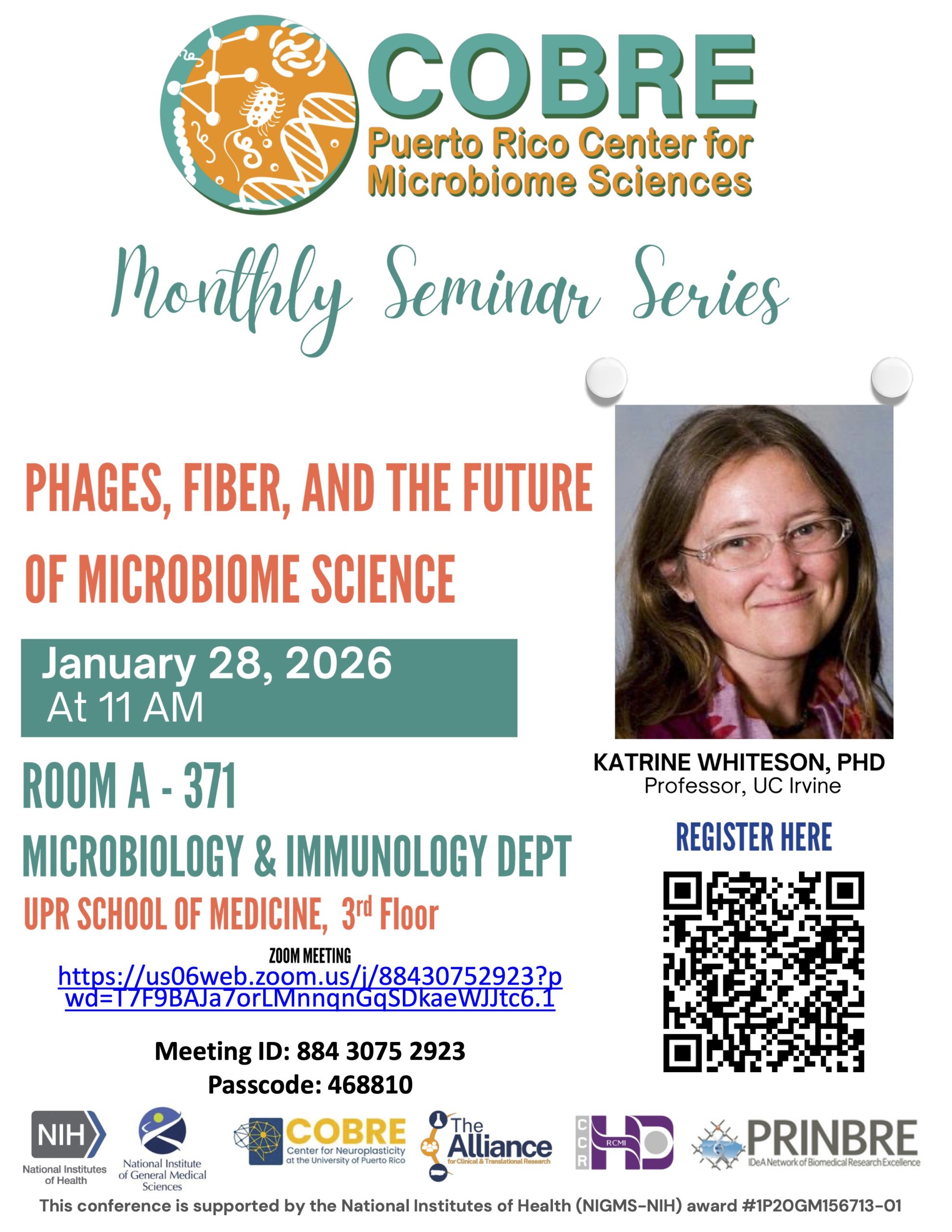 Please save the date and share with colleagues our announcement for the upcoming COBRE PR-Center for Microbiome Sciences Seminar: