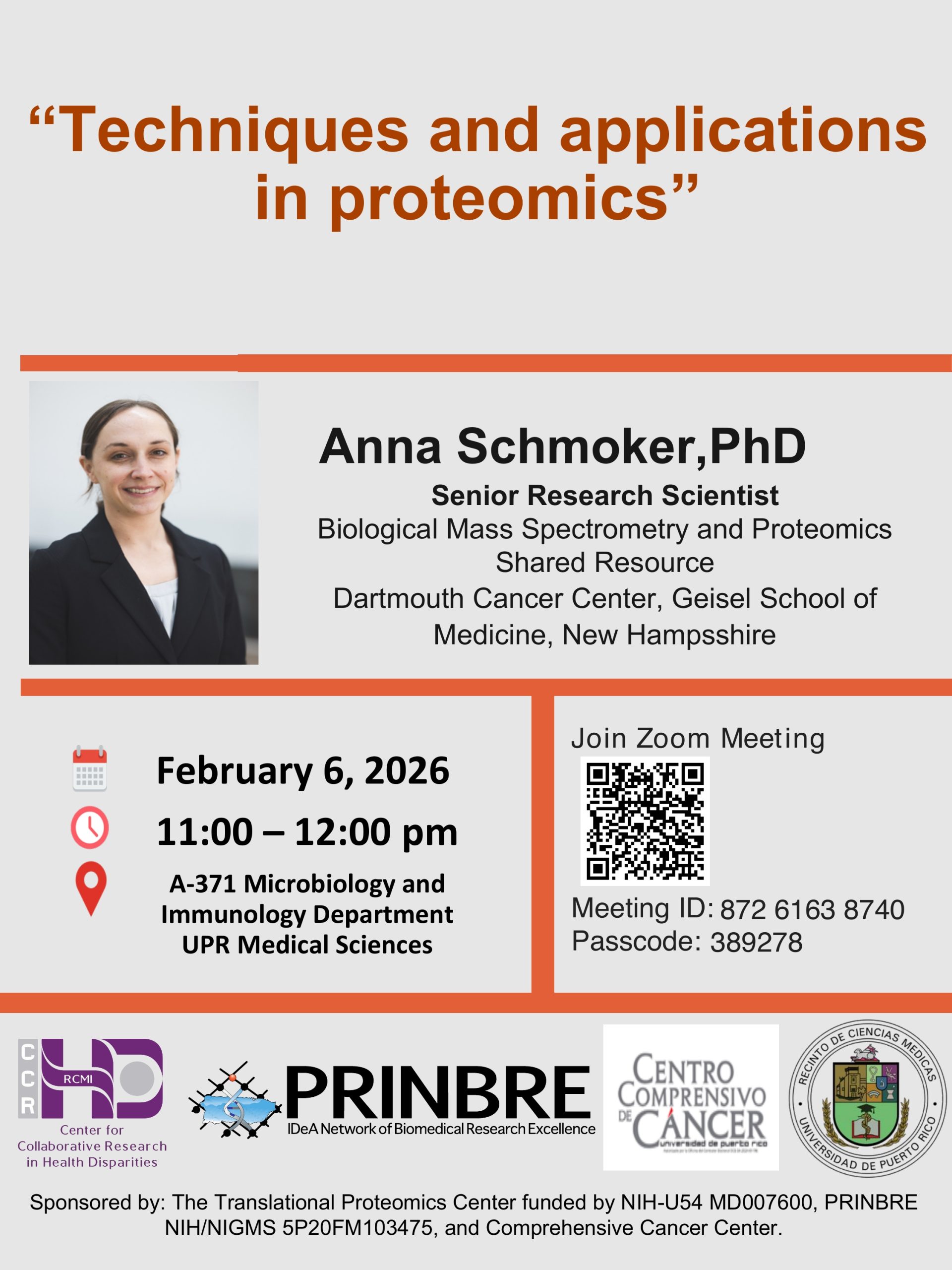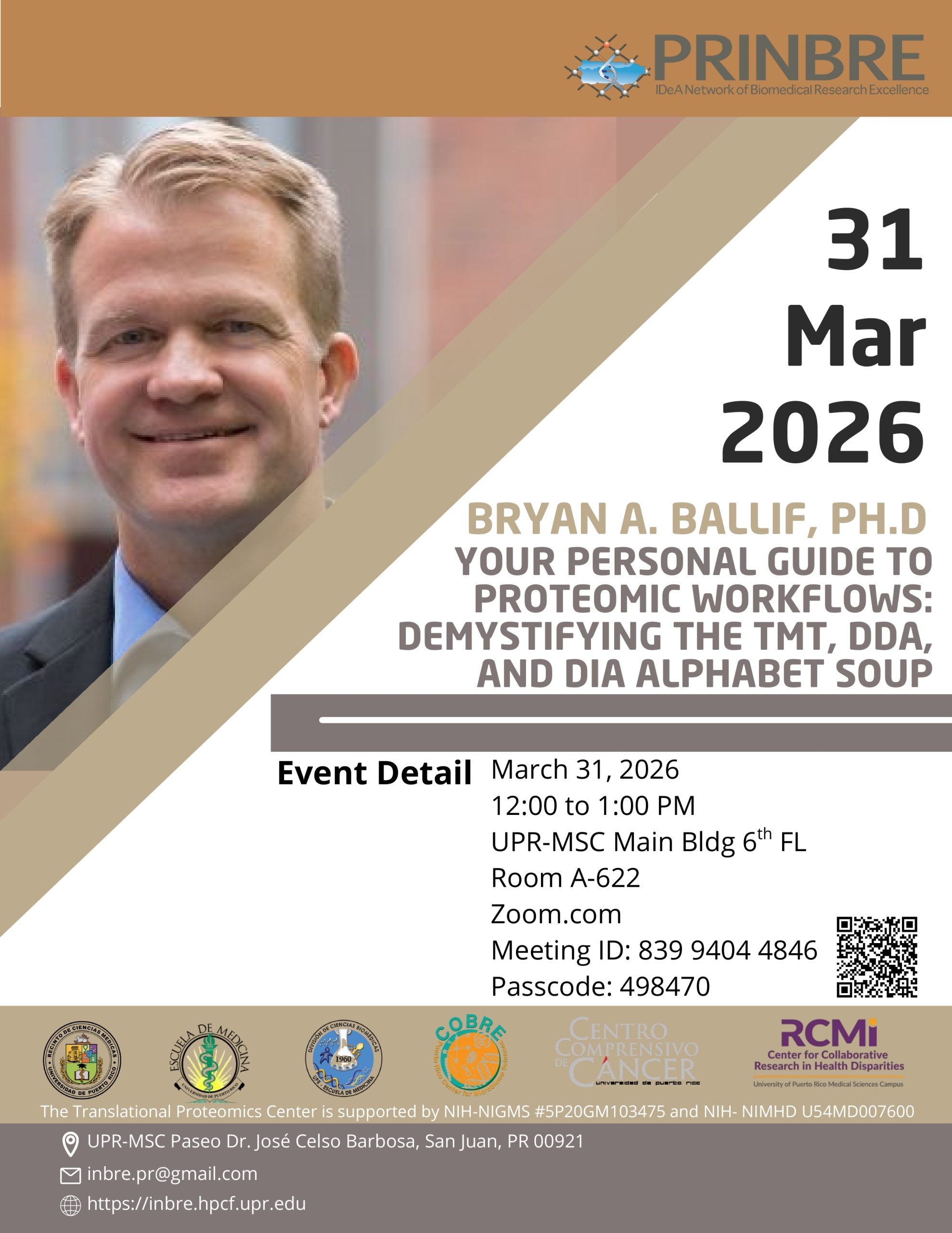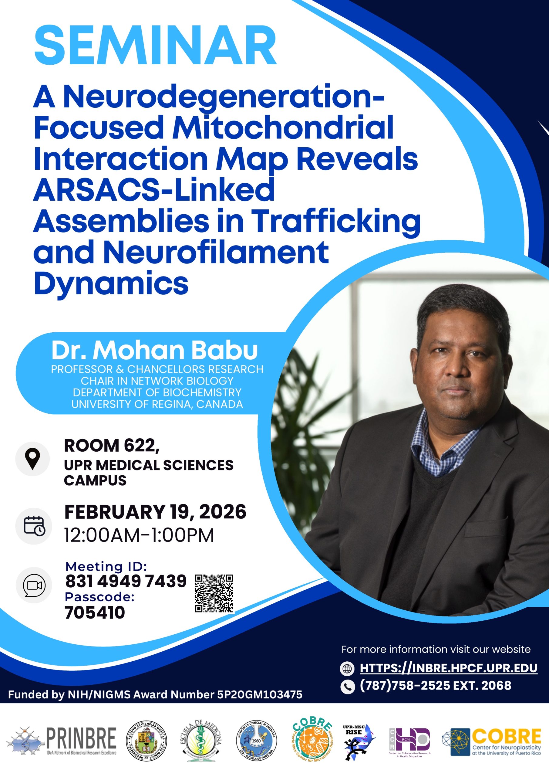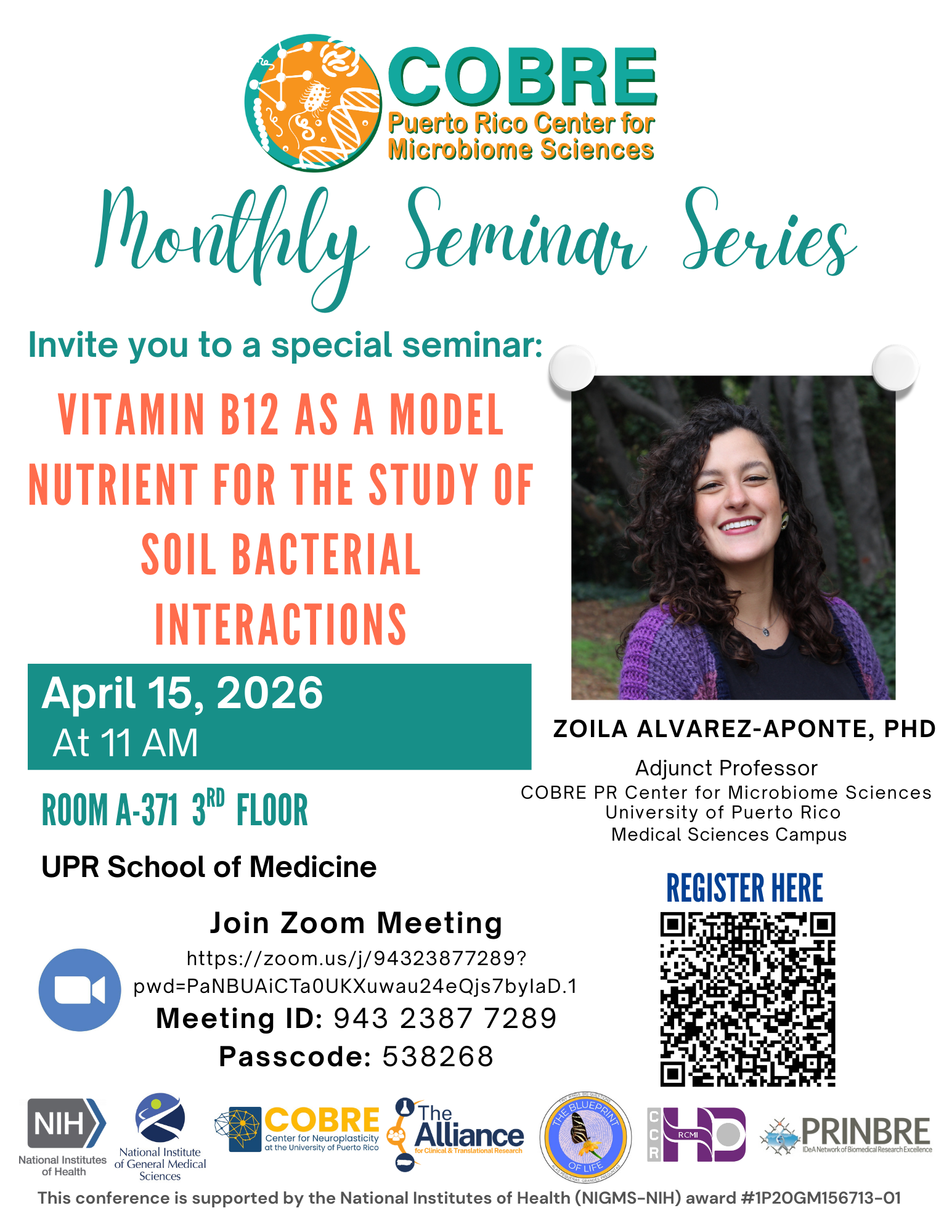 We look forward to your participation and THANK the collaboration of other NIH center grants, especially PR-INBRE, for hosting ZOOM.