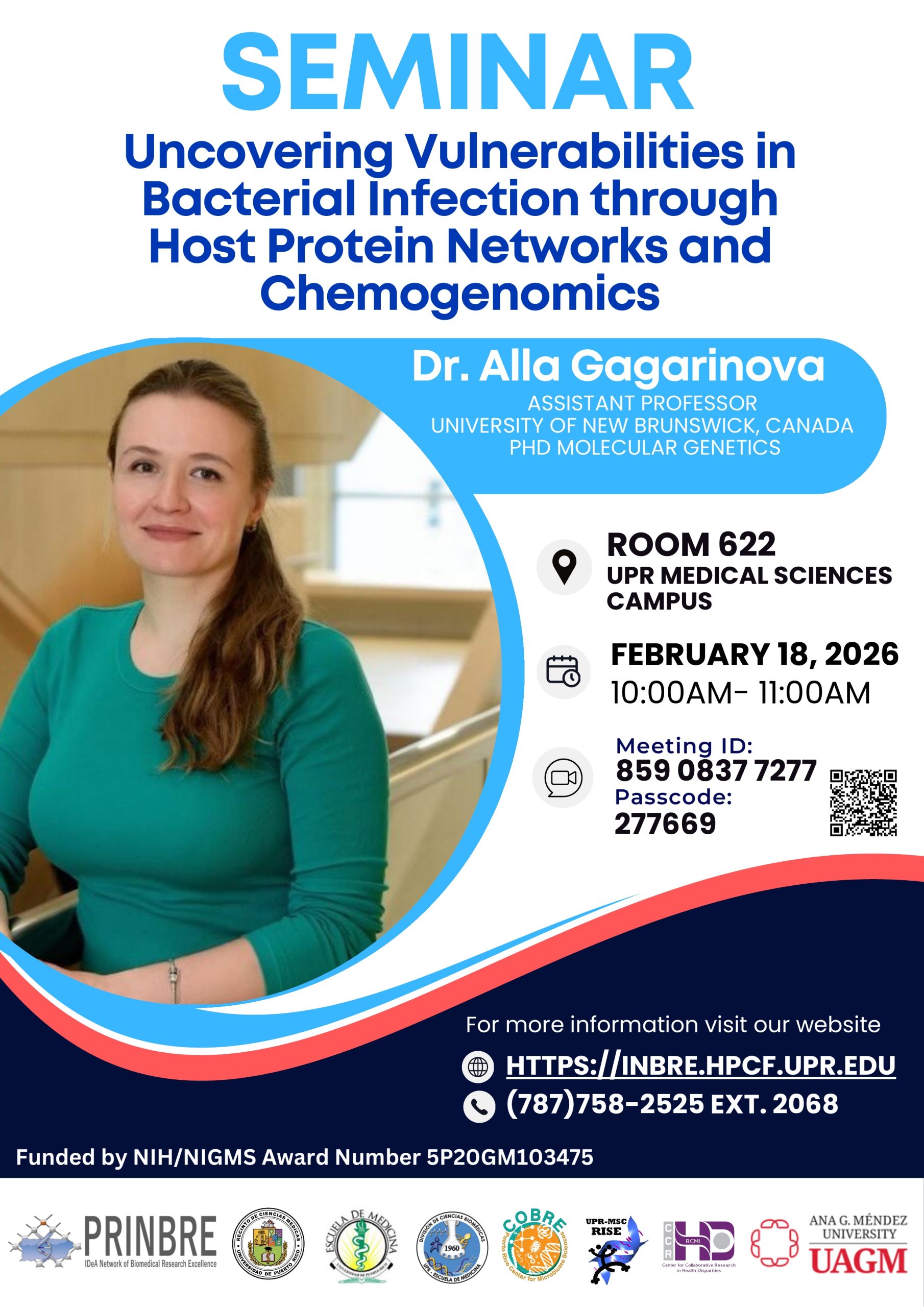 The Science and Technology Competency and Education Core of the Puerto Rico IDeA Network of Biomedical Research Excellence (PR-INBRE) at the University of Puerto Rico, Medical Sciences Campus, invites you to attend the next seminar in the G-RISE Program Seminar Series: “Paths to B Cell Immunity”