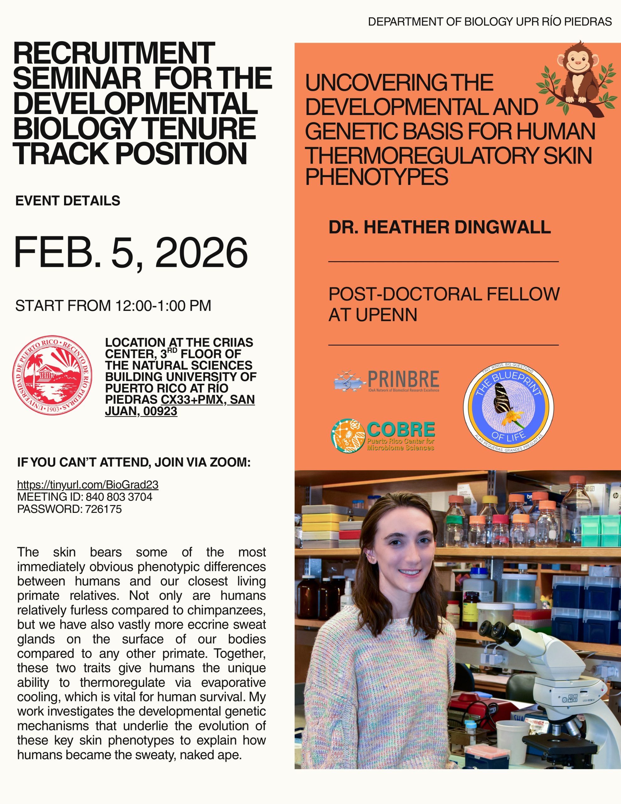 Seminar offered by Dr. Juan López Garriga. Date: Saturday, Nov 05, 2022 – Time: 9:00AM – 3:00PM – Place: UPR-Cayey, Science Building, Amphitheater (NEC).