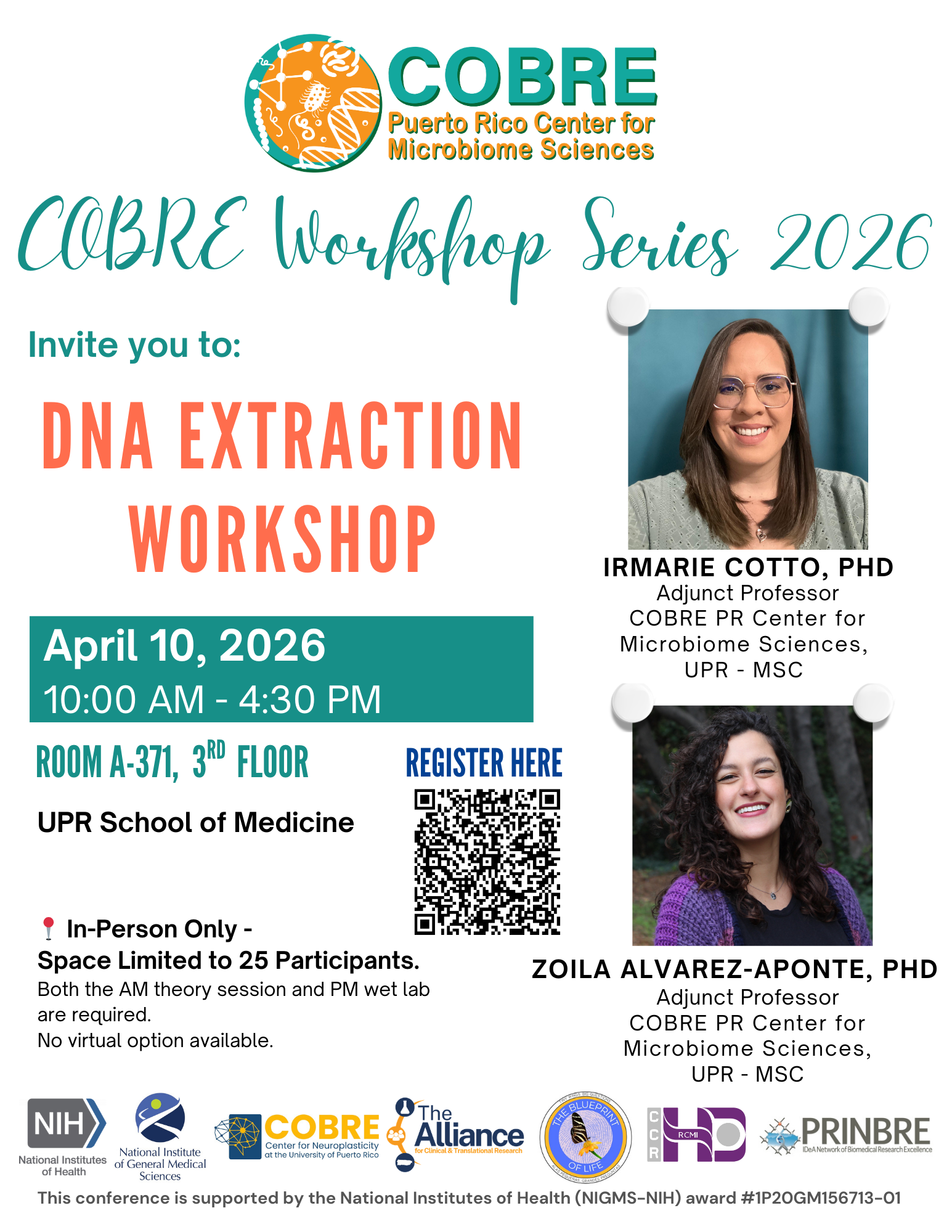 The program will open with introductions from CARIB-CARES (NCI), and NIGMS COBREs CPCHE, and the Puerto Rico Center for Microbiome Sciences (PR-CMS), setting the stage for collaboration across our centers.